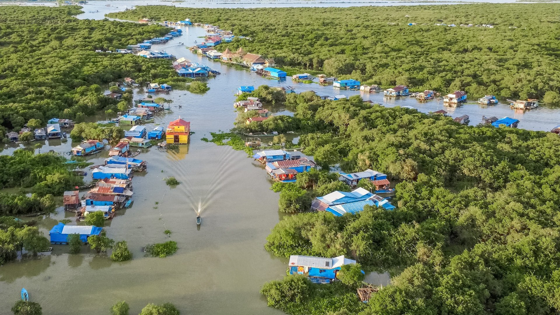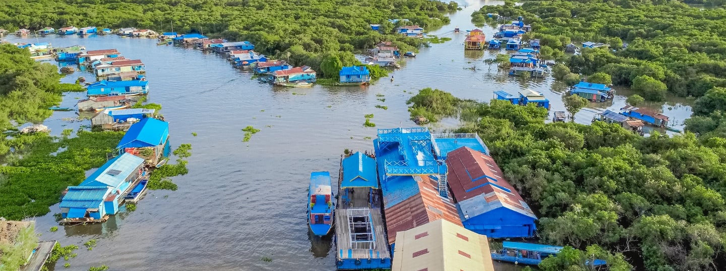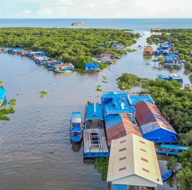 Chong Kneas es una aldea flotante en el borde del lago Tonle Sap, cercana a la ciudad de Siem Reap. Dependiendo de la época del año, las edificaciones estarán más cerca de los manglares cercanos a la costa o más alejadas hacia el interior del lago.